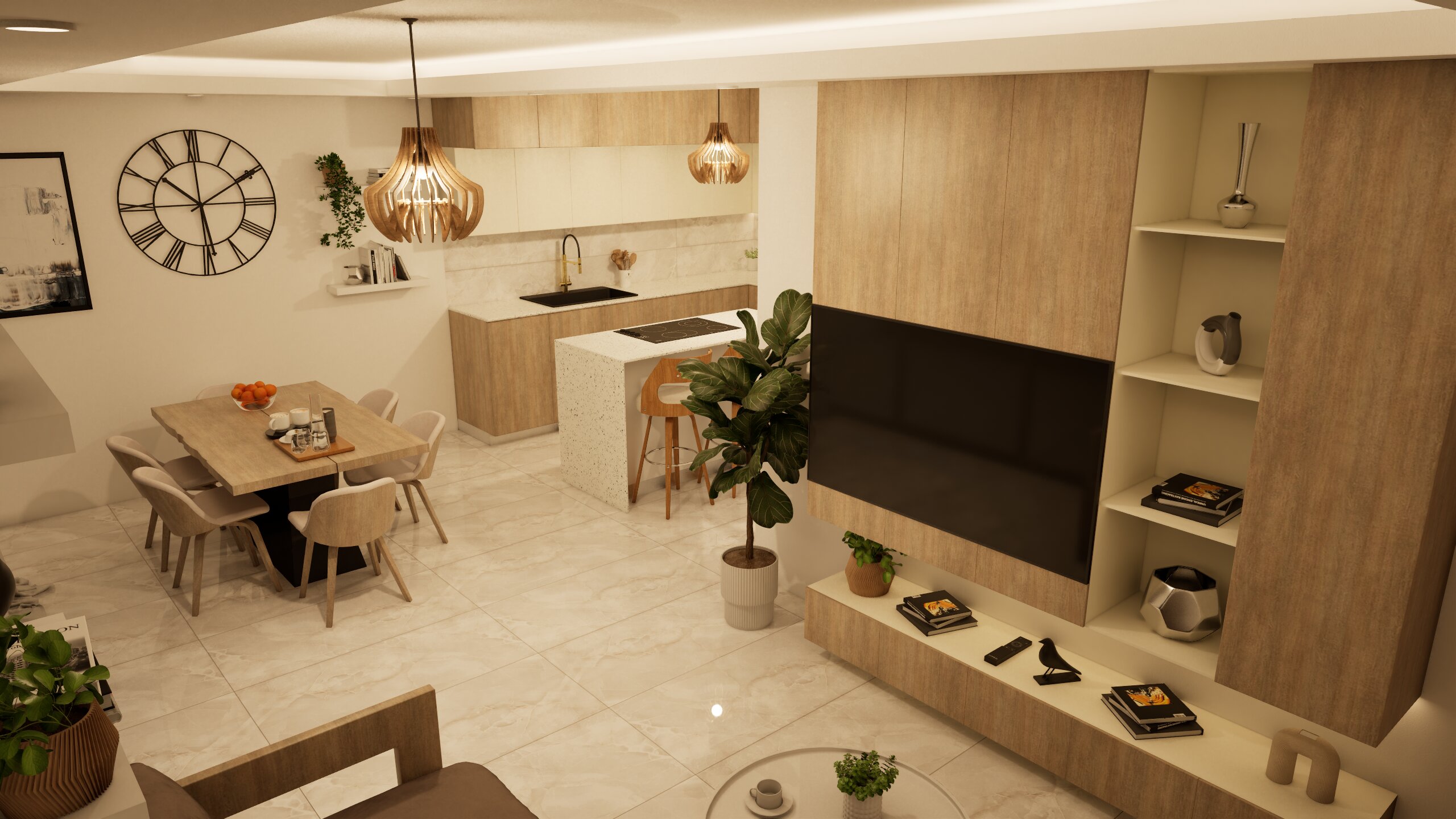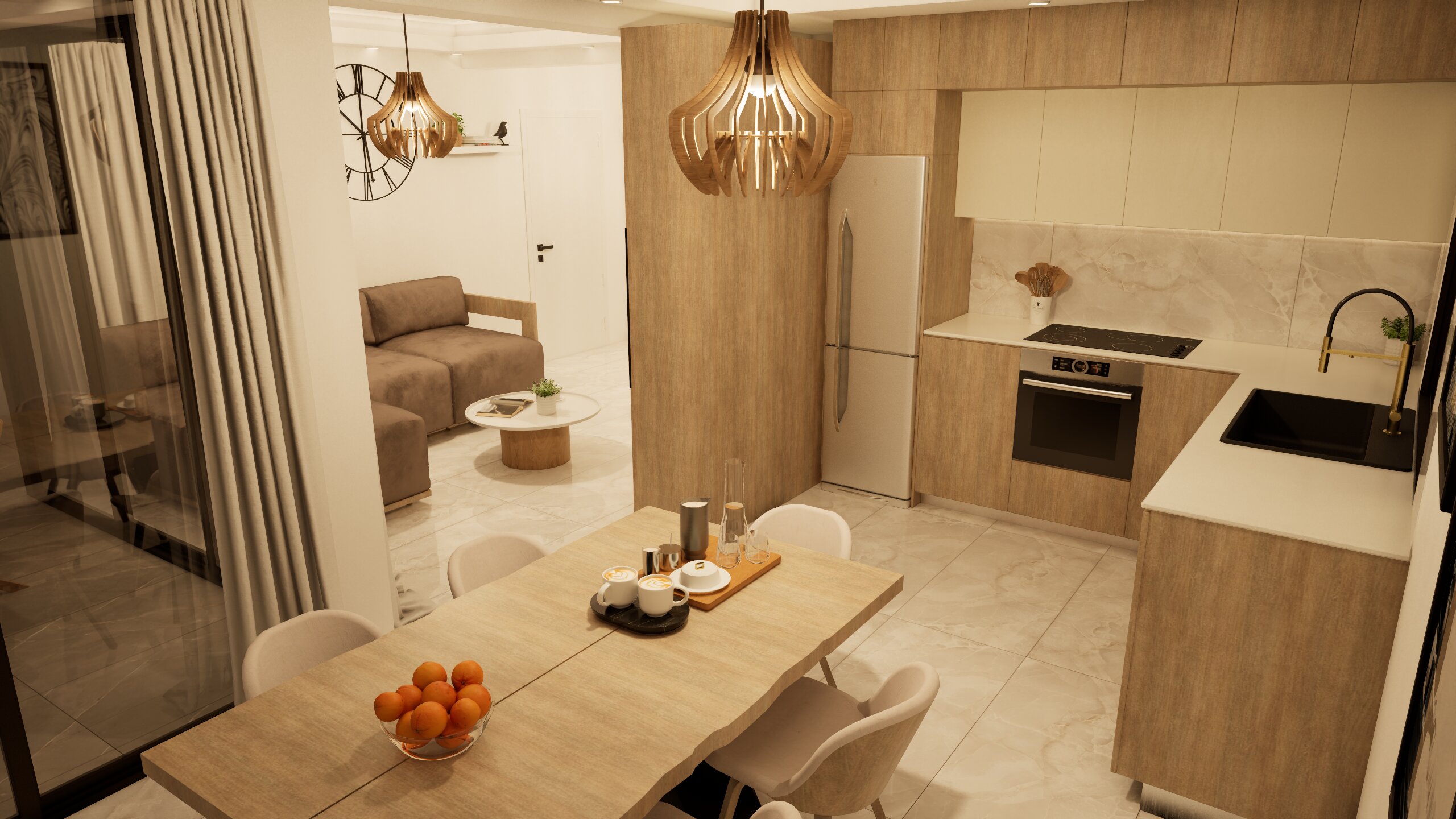 Architecturally, the project embraces a modern aesthetic defined by clean lines, functional layouts and high-quality finishes. Open-plan living areas create a sense of space and fluidity, while spacious balconies and terraces allow residents to fully appreciate the surrounding views and Mediterranean climate. The design approach focuses on both visual appeal and everyday practicality, ensuring a balanced and enjoyable living environment.