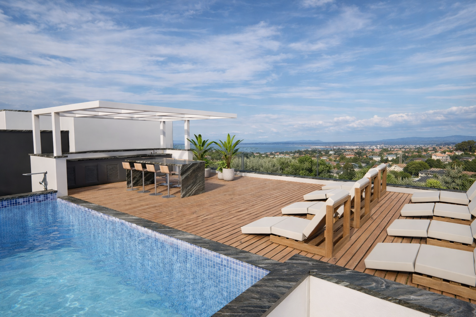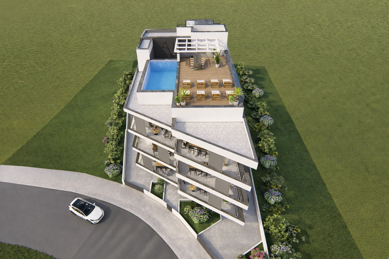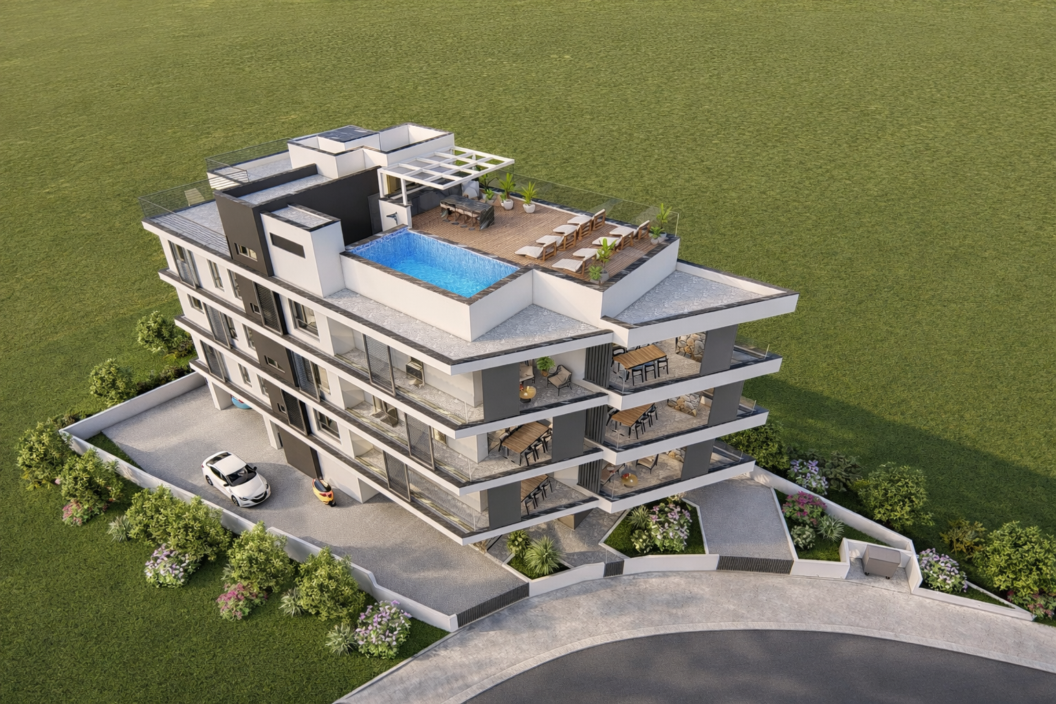 Functionality has been considered in every detail, as each residence includes a dedicated parking space and a private storage room, ensuring ease for homeowners and added efficiency for investors. The jewel of the development is the exclusive 144 sqm roof garden with a communal swimming pool, a premium amenity that offers residents panoramic views and an atmosphere reminiscent of a boutique resort—ideal for relaxation, entertaining or simply unwinding in style.